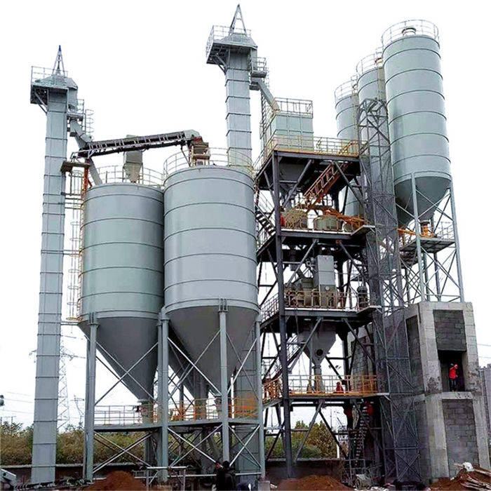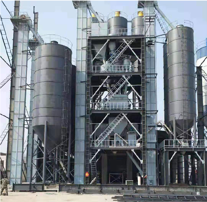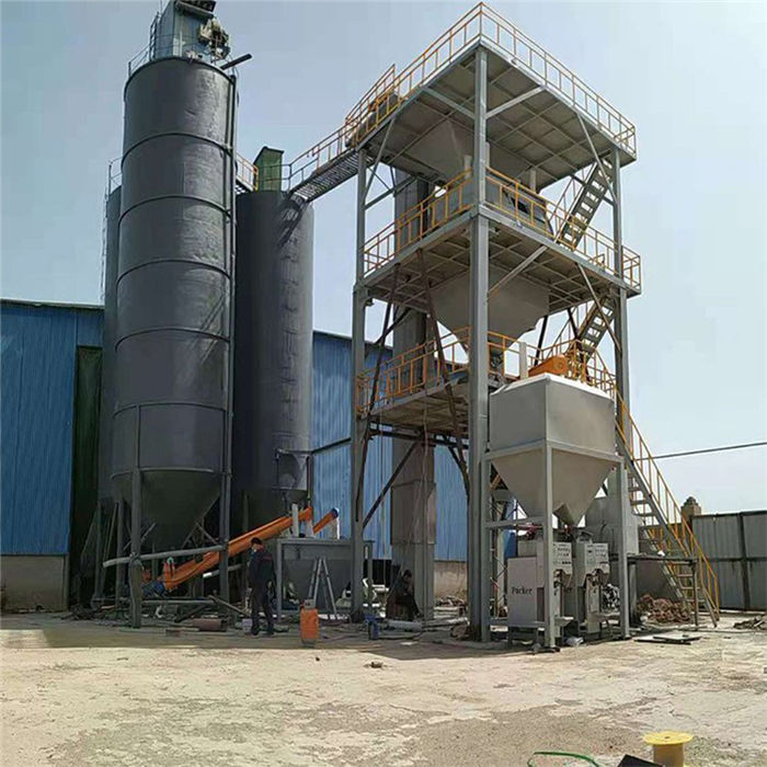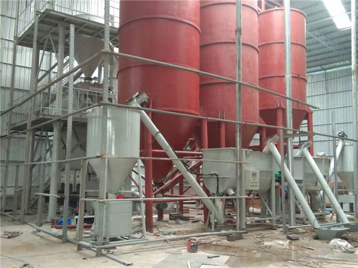 該套生產線由砂子烘干系統及預拌砂漿混合系統兩部分組成。主要包含:砂子烘干系統、篩分輸送系統、原料儲存系統、高效混合系統、自動配料系統、氣動平衡系統、除塵系統、袋式包裝系統、散裝罐車專業包裝系統以及PLC自動控制系統等。