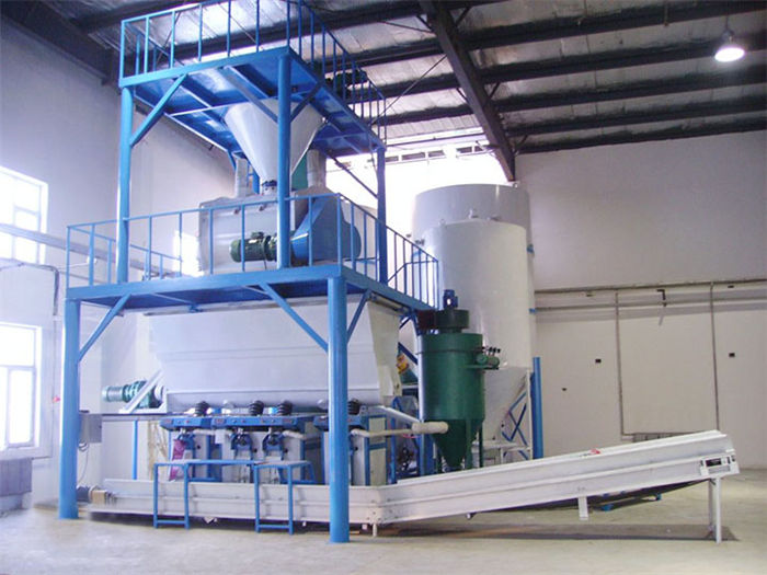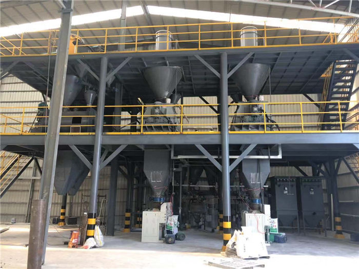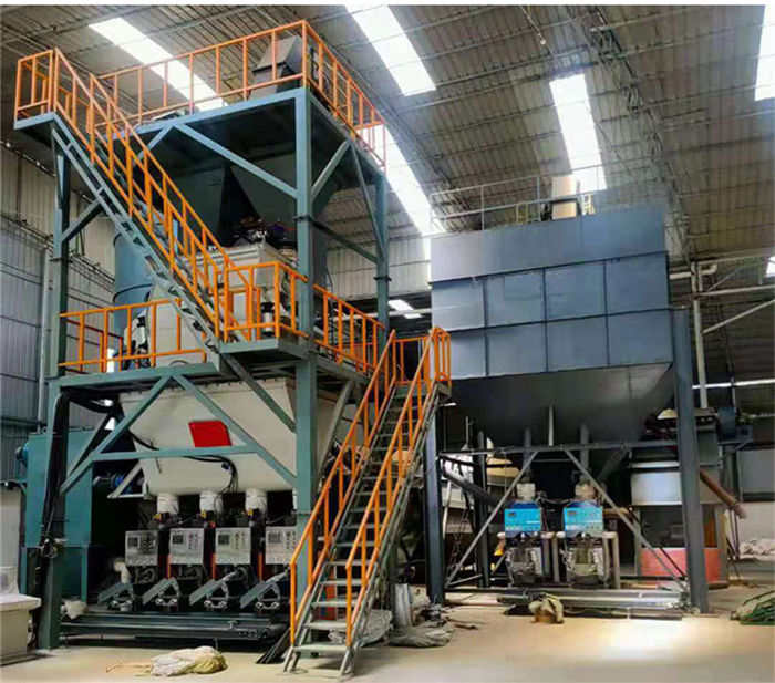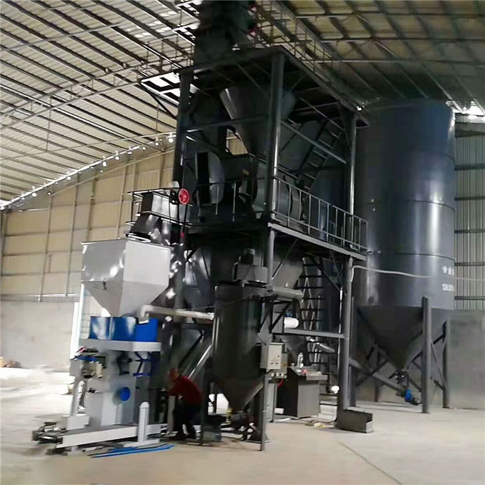 四、混合系統采用4立方大容量無重力雙軸高效混合機,混合時間短,混合精度高,混合速率3-5分鐘一批。高效生產的同時,確保成品砂漿實用效果無虞。